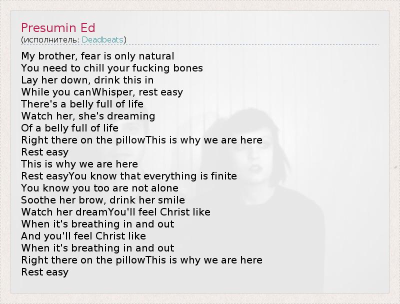 А как ты думаешь, о чем песня "Presumin Ed" ?