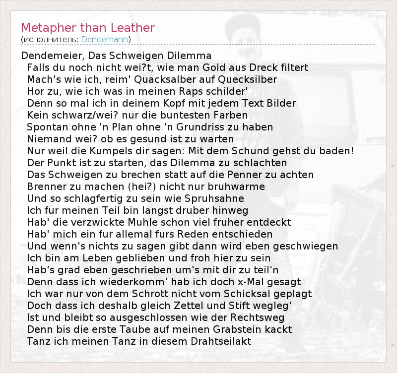 ГлавнаяИсполнителиDendemannMetapher than Leather