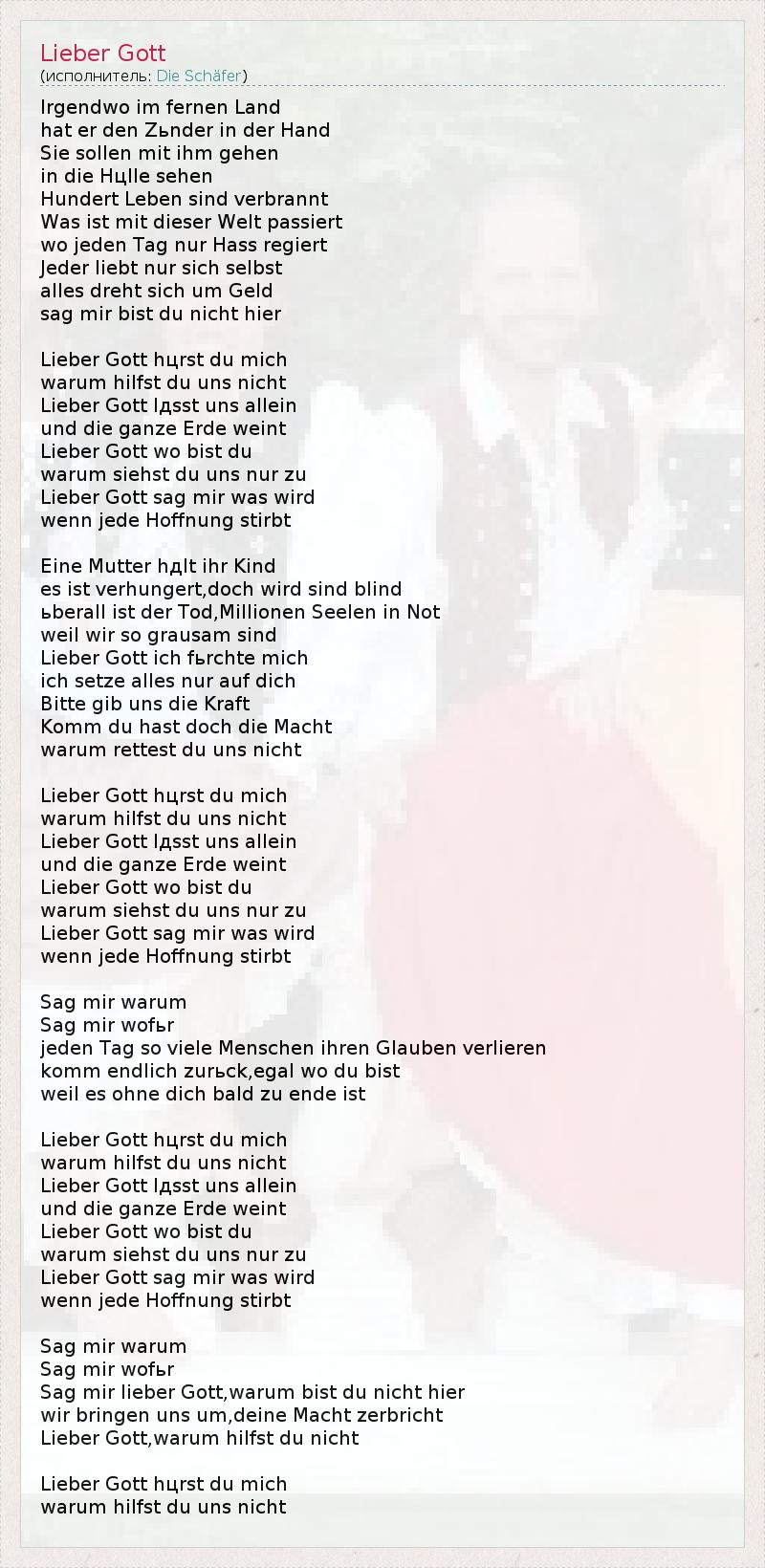 А как ты думаешь, о чем песня "Lieber Gott" ?