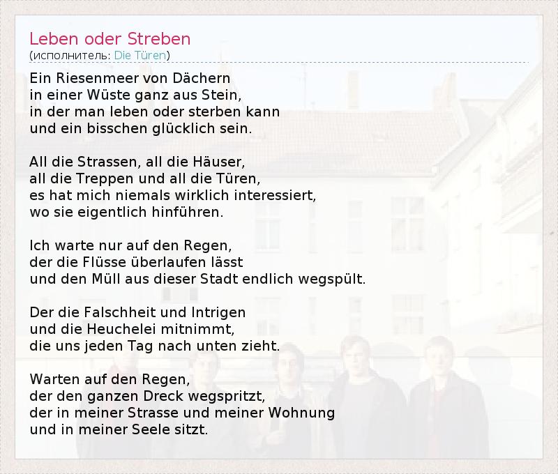 А как ты думаешь, о чем песня "Leben oder Streben" ?