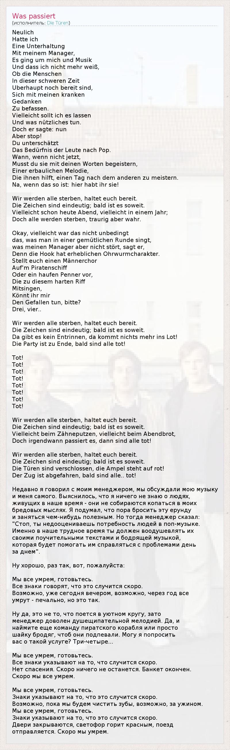 Wir Верден Все Sterben, haltet Euch Bereit.