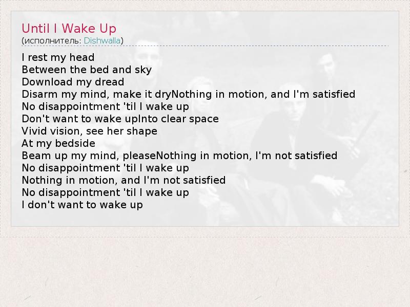 А как ты думаешь, о чем песня "Until I Wake Up" ?