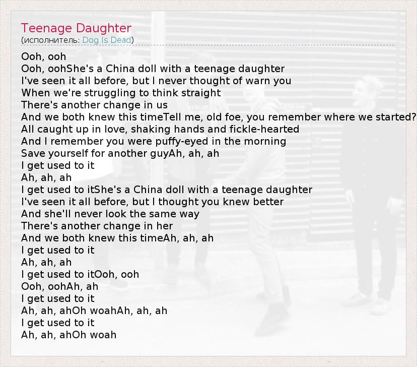 А как ты думаешь, о чем песня "Teenage Daughter" ?