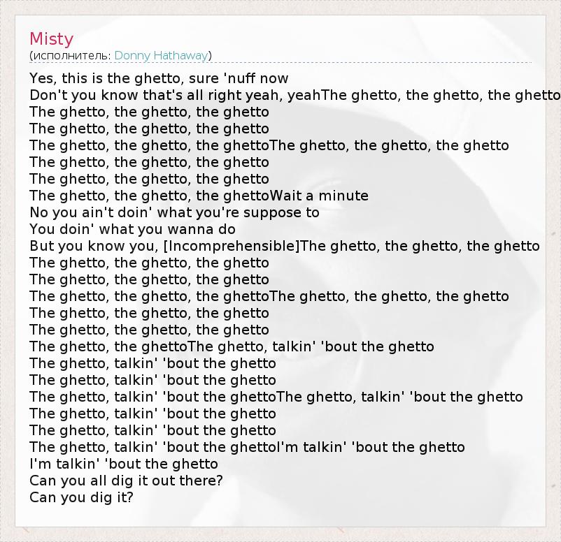 The ghetto, the ghettoThe ghetto, talkin' 'bout the ghetto