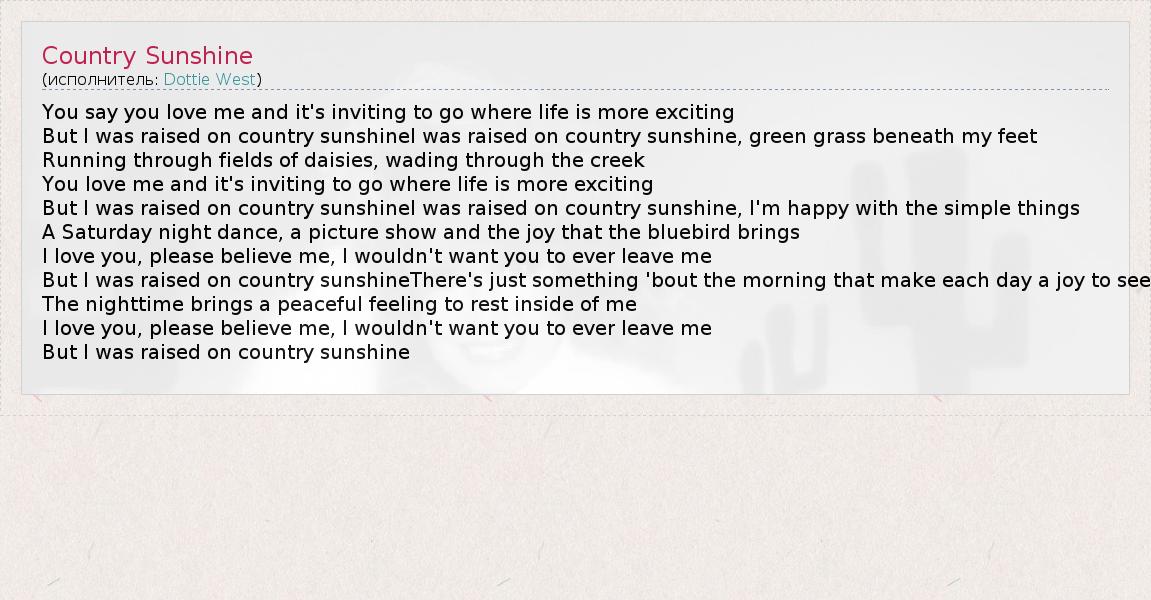 А как ты думаешь, о чем песня "Country Sunshine" ?
