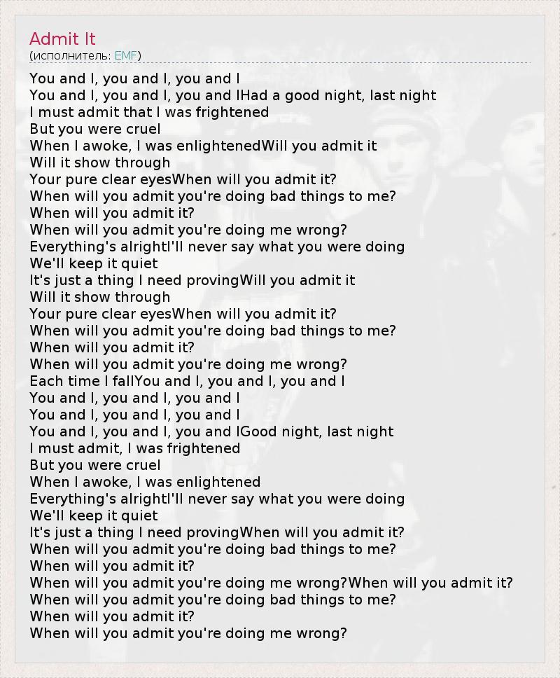 А как ты думаешь, о чем песня "Admit It" ?