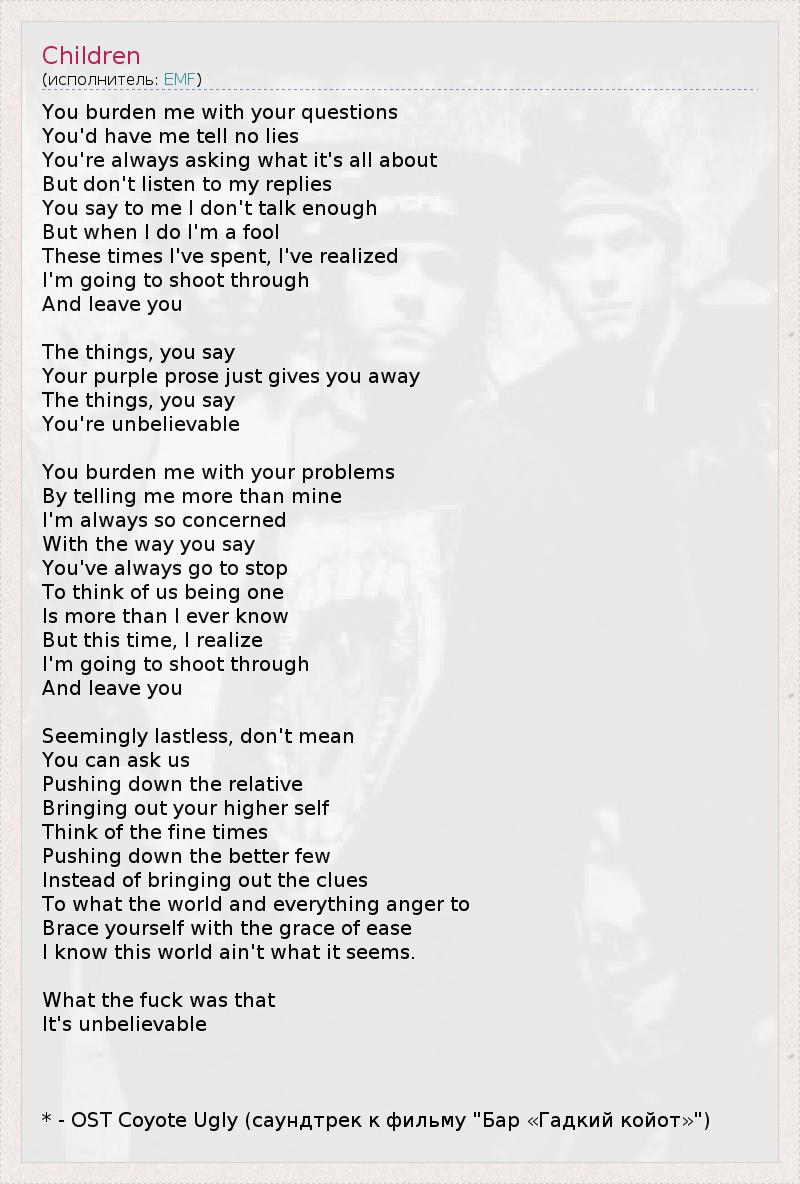 Это интересно:EMF ("Epsom Mad Funkers") — английская группа, сформированная в октябре 1989 года в Сайндерфорде. В течение первых восьми лет работы (1989—1997) EMF выпустили три студийных альбома и взяли перерыв, после которого воссоединились. Первый сингл группы «Unbelievable» достиг 3-го места в британских чартах и был хитом номер один в американском хит-параде Billboard Hot 100. Дебютный альбом «Schubert Dip» добрался до 3-й строчки... продолжение