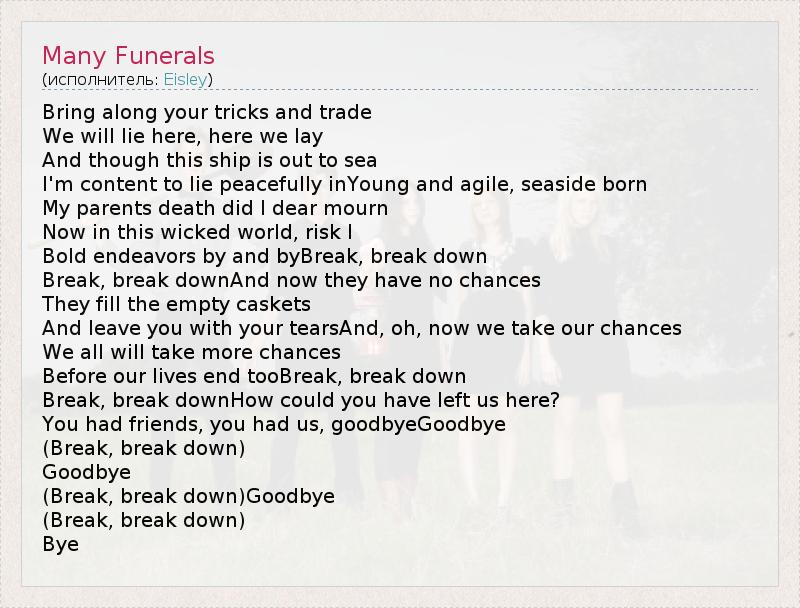 А как ты думаешь, о чем песня "Many Funerals" ?