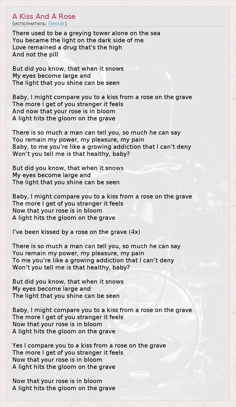 А как ты думаешь, о чем песня "A Kiss And A Rose" ?