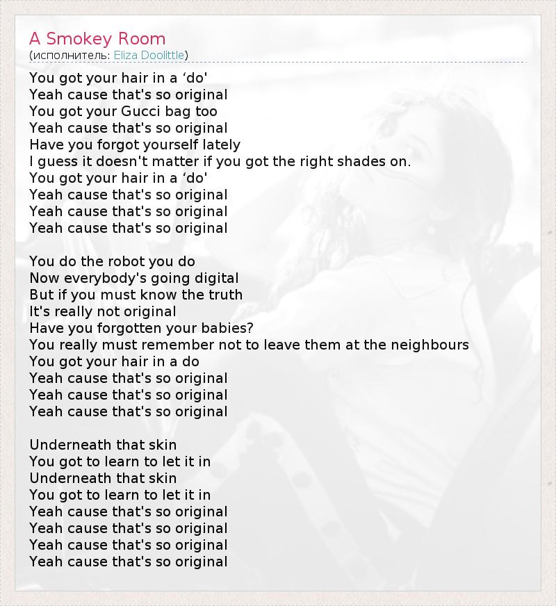 А как ты думаешь, о чем песня "A Smokey Room" ?