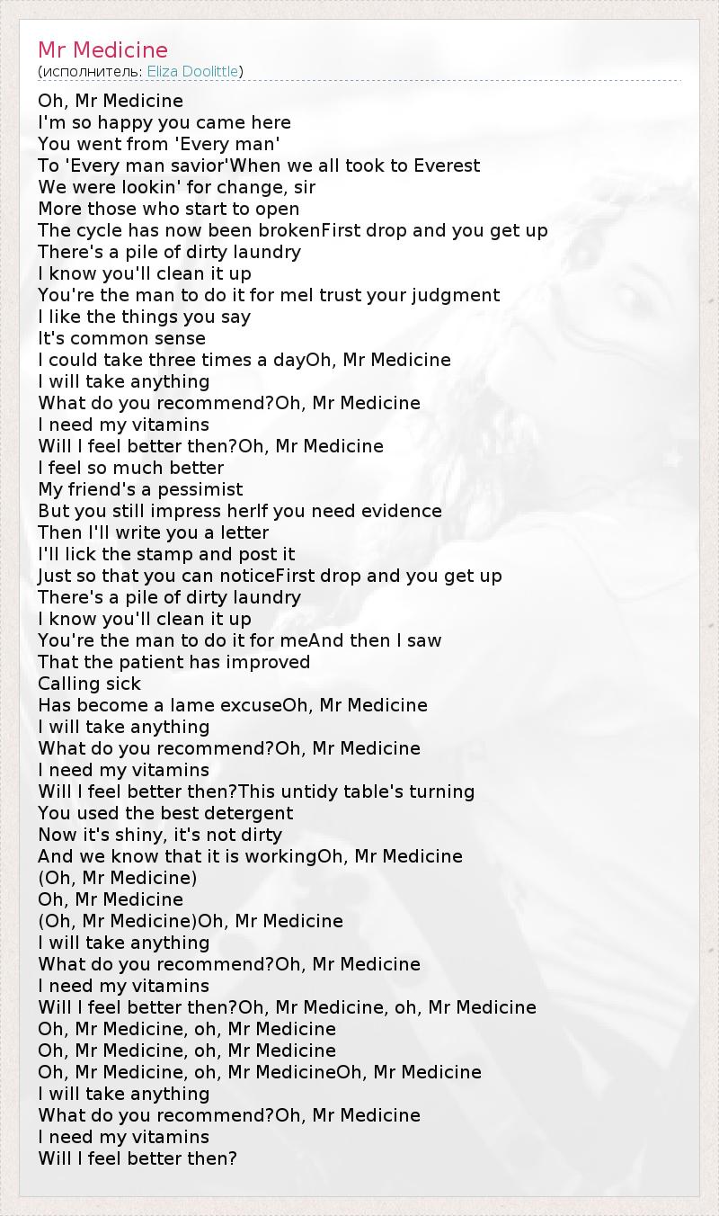А как ты думаешь, о чем песня "Mr Medicine" ?