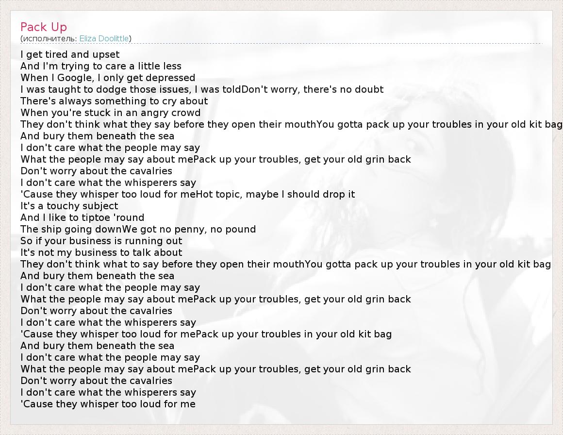 А как ты думаешь, о чем песня "Pack Up" ?