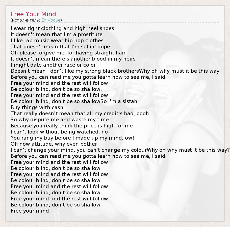 А как ты думаешь, о чем песня "Free Your Mind" ?
