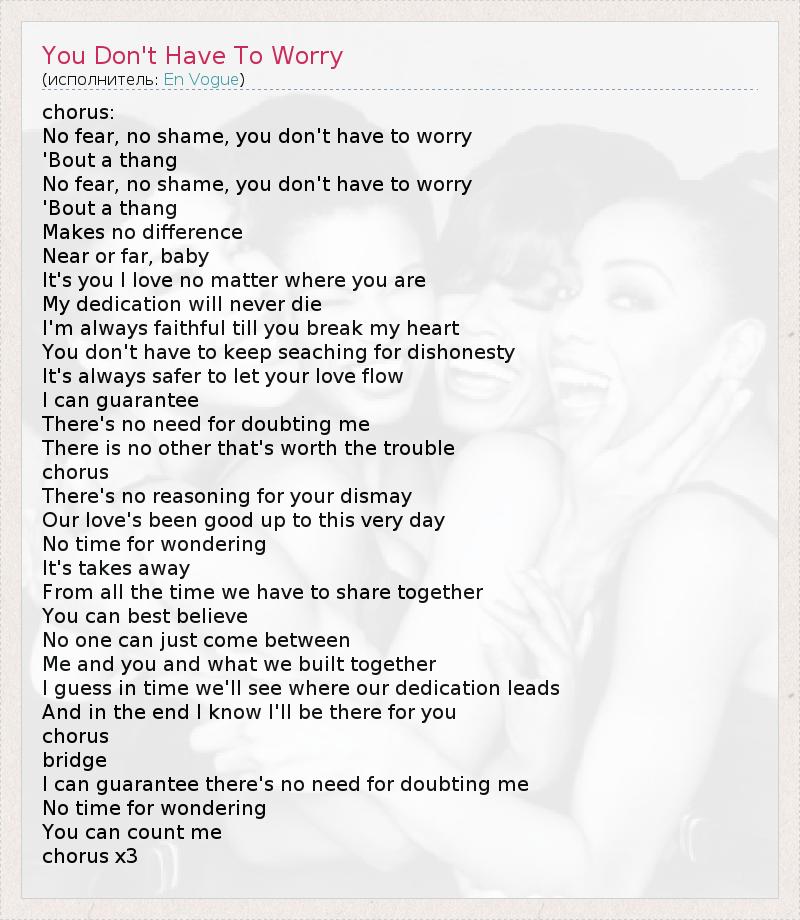 А как ты думаешь, о чем песня "You Don't Have To Worry" ?