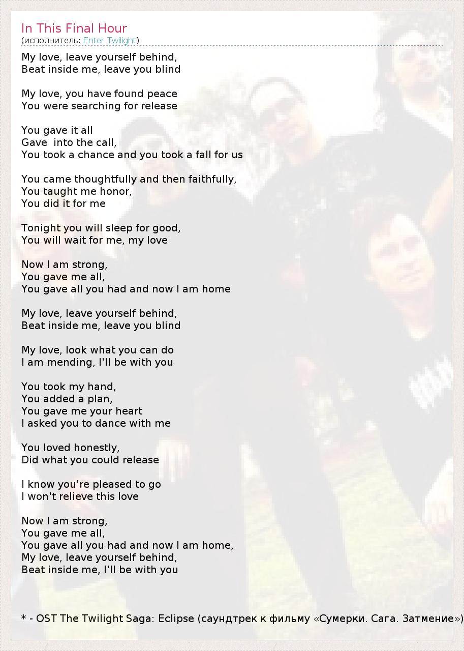 А как ты думаешь, о чем песня "In This Final Hour" ?