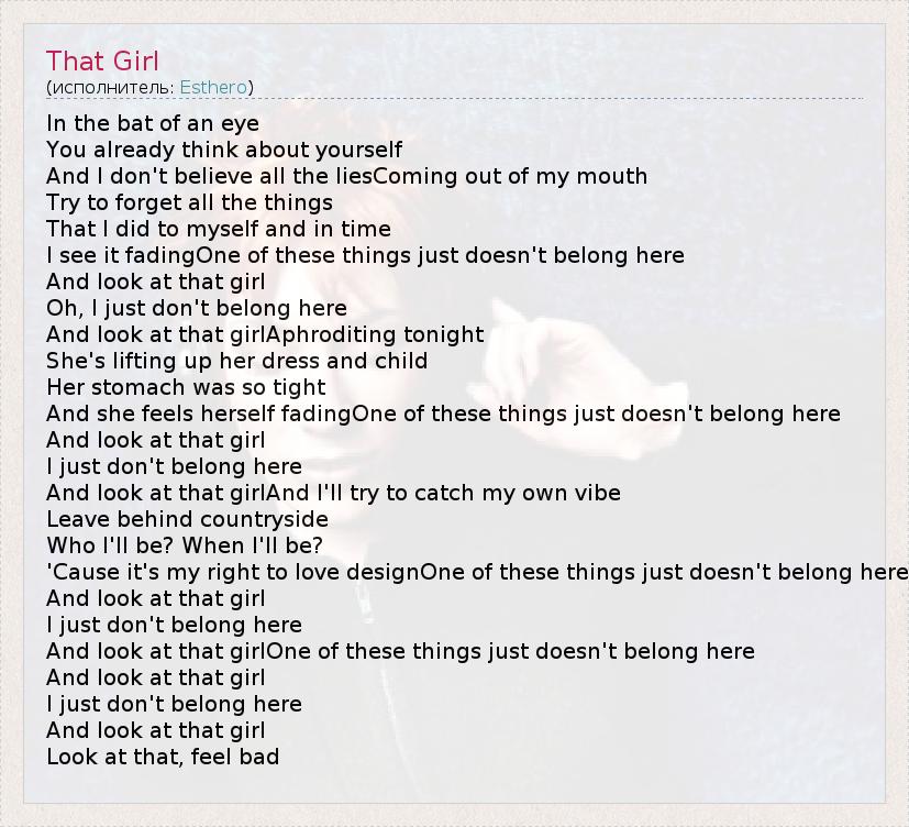 А как ты думаешь, о чем песня "That Girl" ?