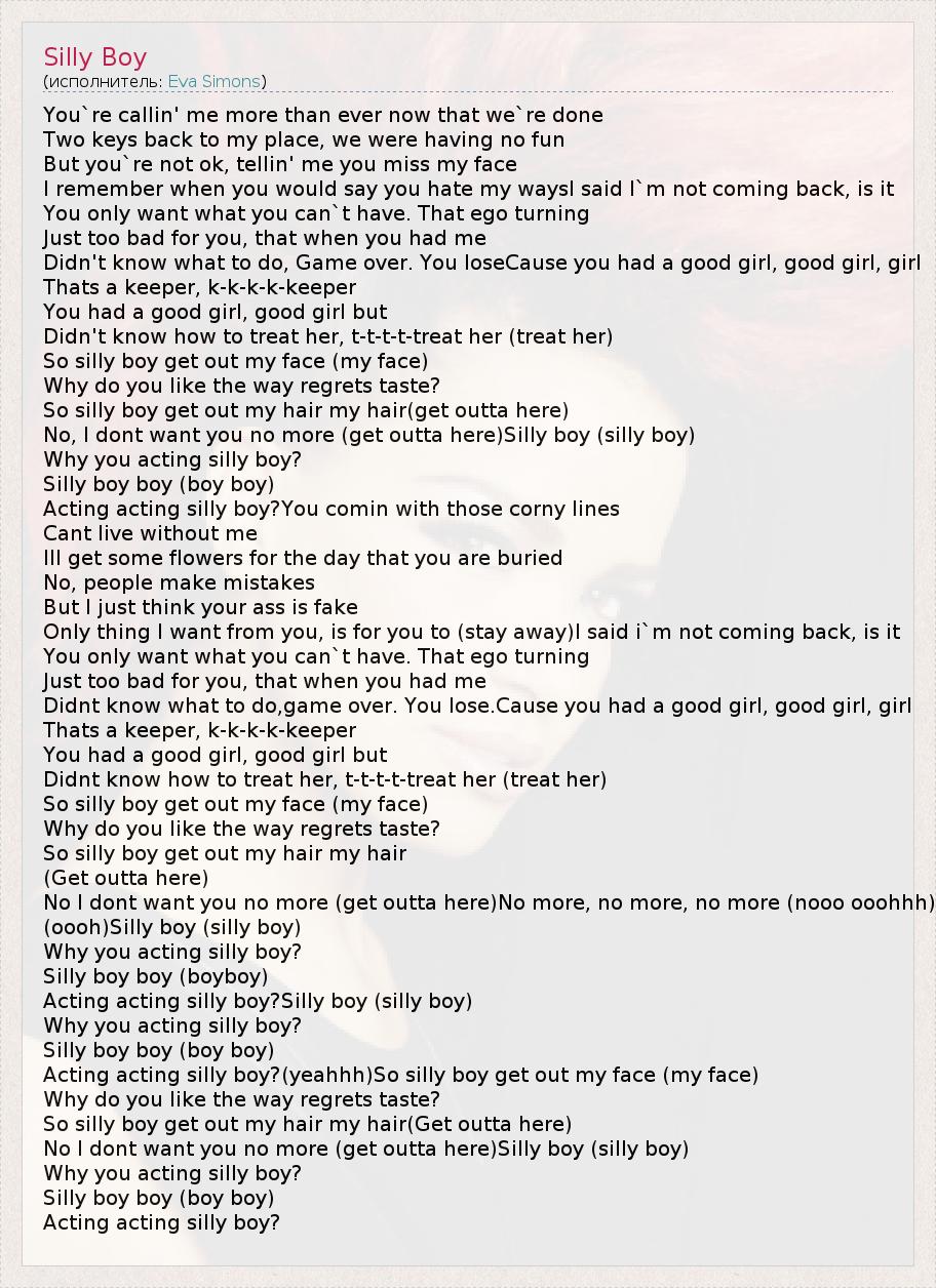 А как ты думаешь, о чем песня "Silly Boy" ?