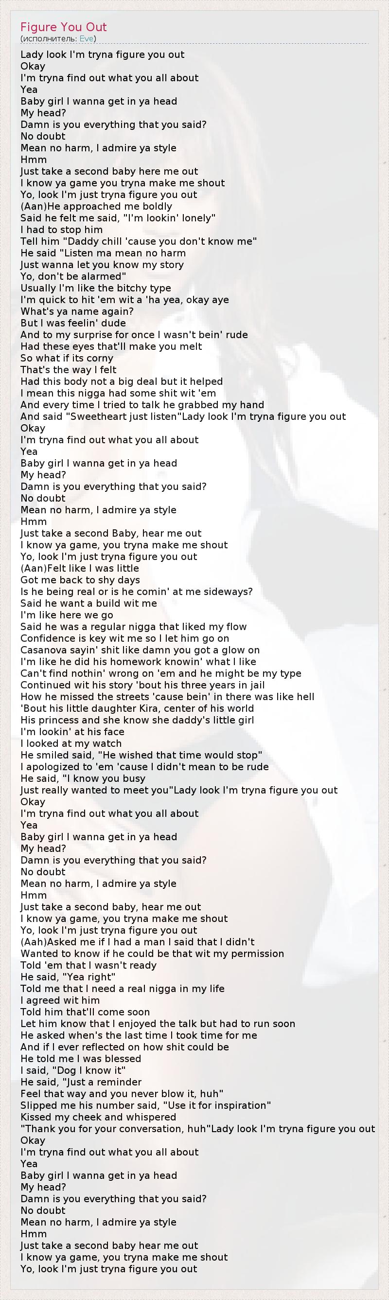 А как ты думаешь, о чем песня "Figure You Out" ?