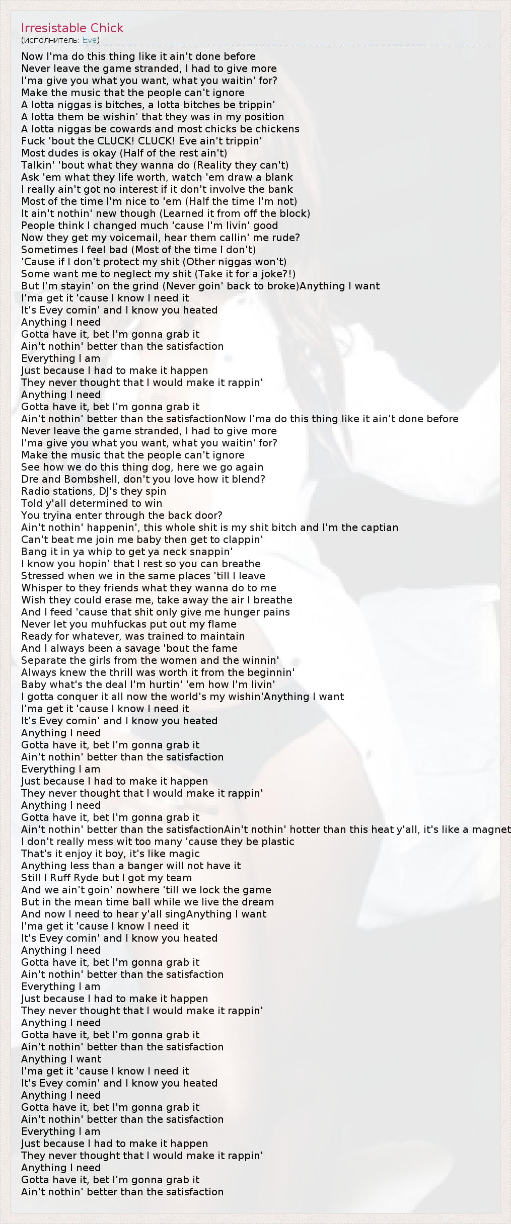 А как ты думаешь, о чем песня "Irresistable Chick" ?