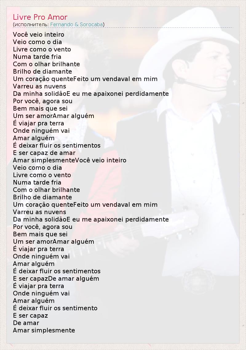 А как ты думаешь, о чем песня "Livre Pro Amor" ?
