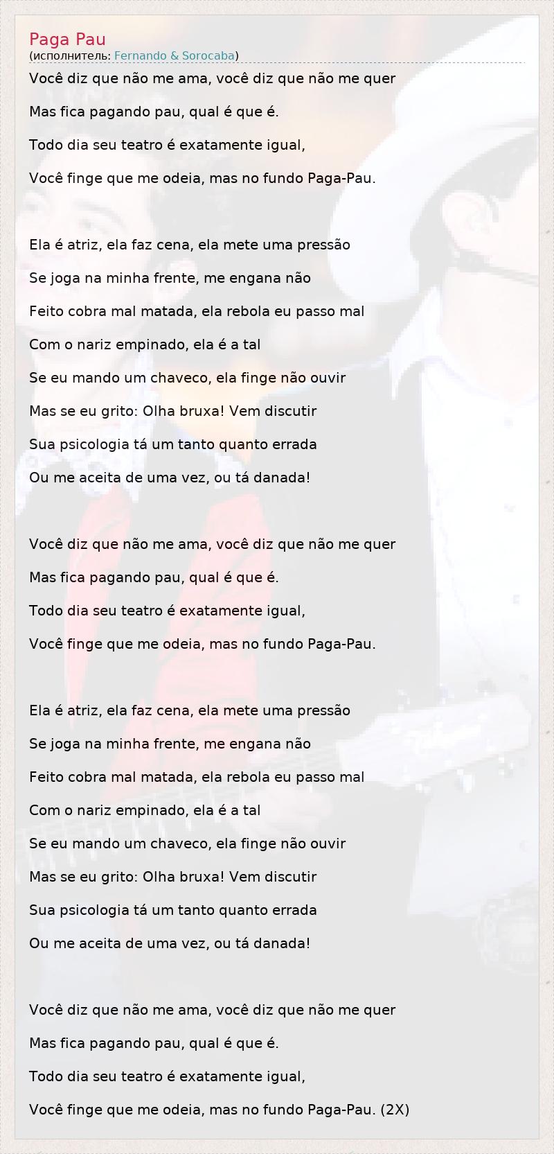 Você finge que me odeia, mas no fundo Paga-Pau. (2X)