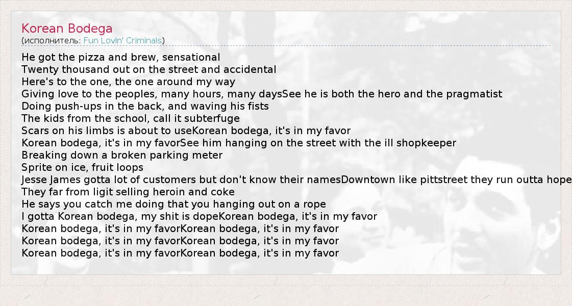 А как ты думаешь, о чем песня "Korean Bodega" ?