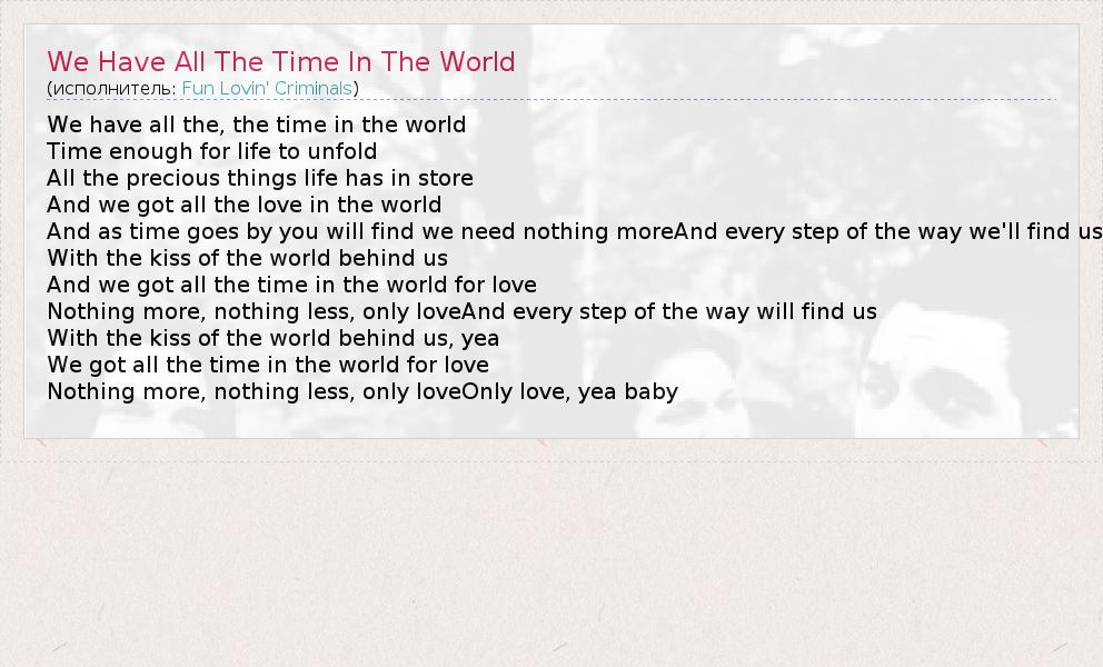 А как ты думаешь, о чем песня "We Have All The Time In The World" ?