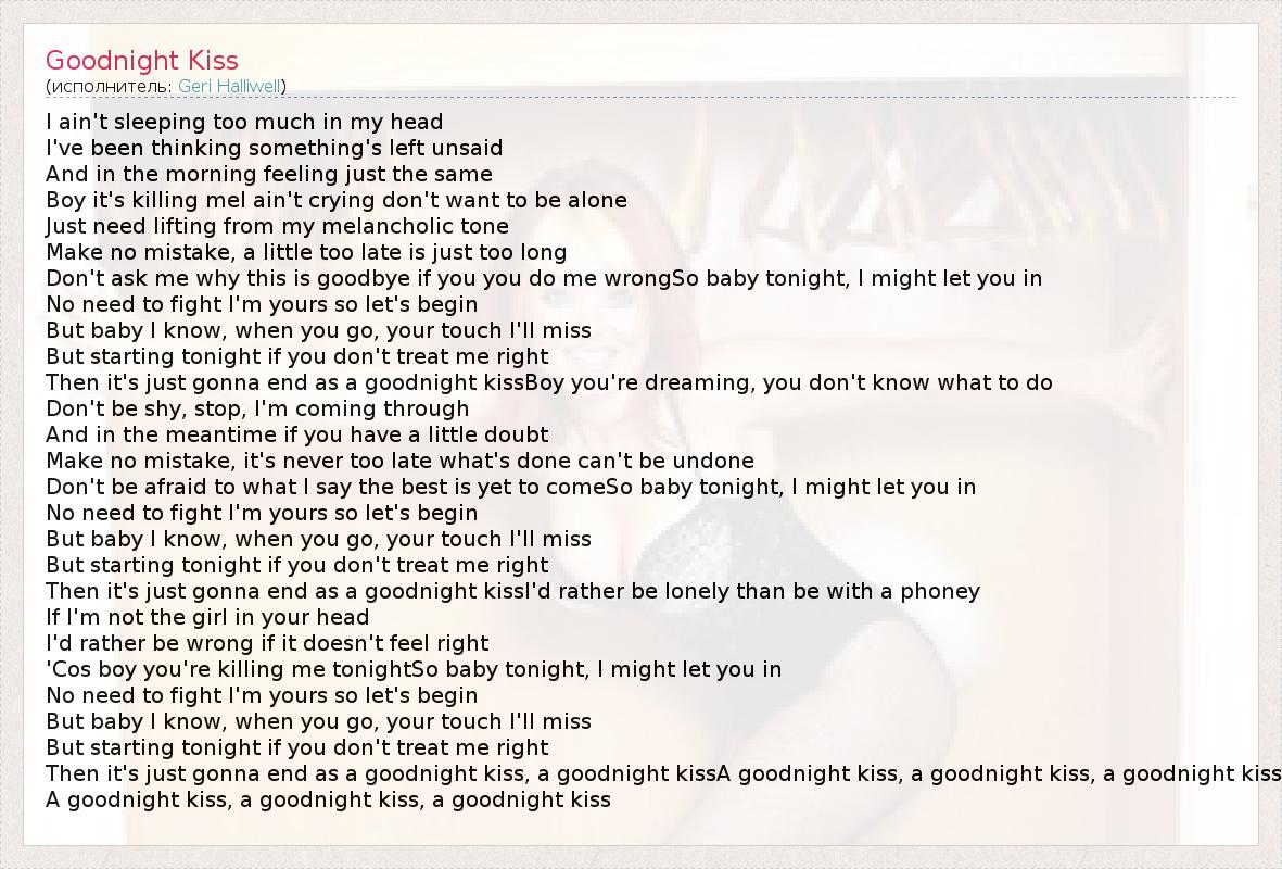 Then it's just gonna end as a goodnight kiss, a goodnight kissA goodnight kiss, a goodnight kiss, a goodnight kiss