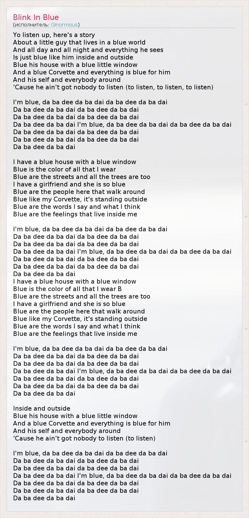 Da ba dee da ba dai I'm blue, da ba dee da ba dai da ba dee da ba dai