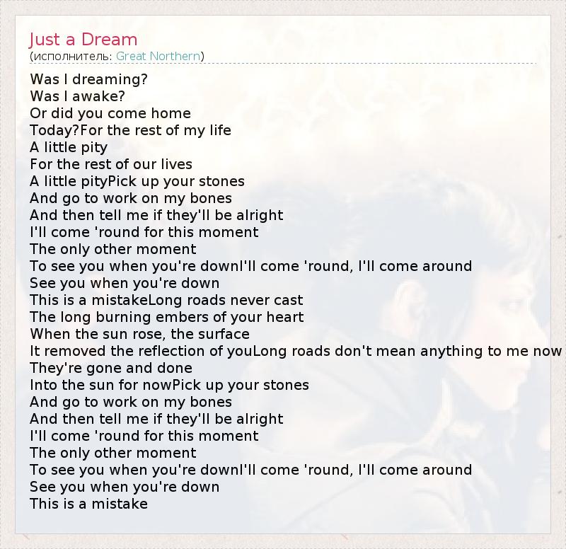 А как ты думаешь, о чем песня "Just a Dream" ?