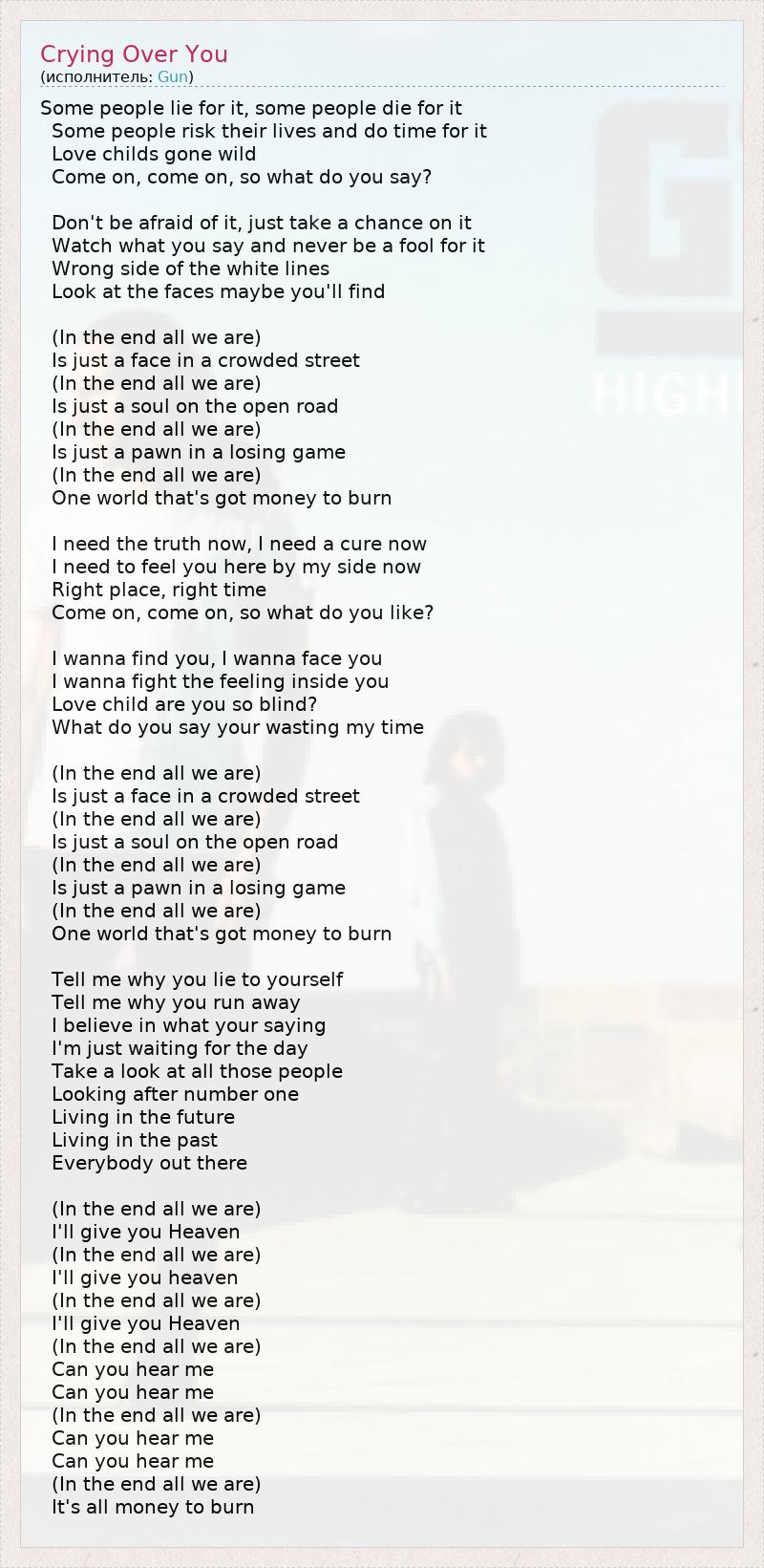 А как ты думаешь, о чем песня "Crying Over You" ?