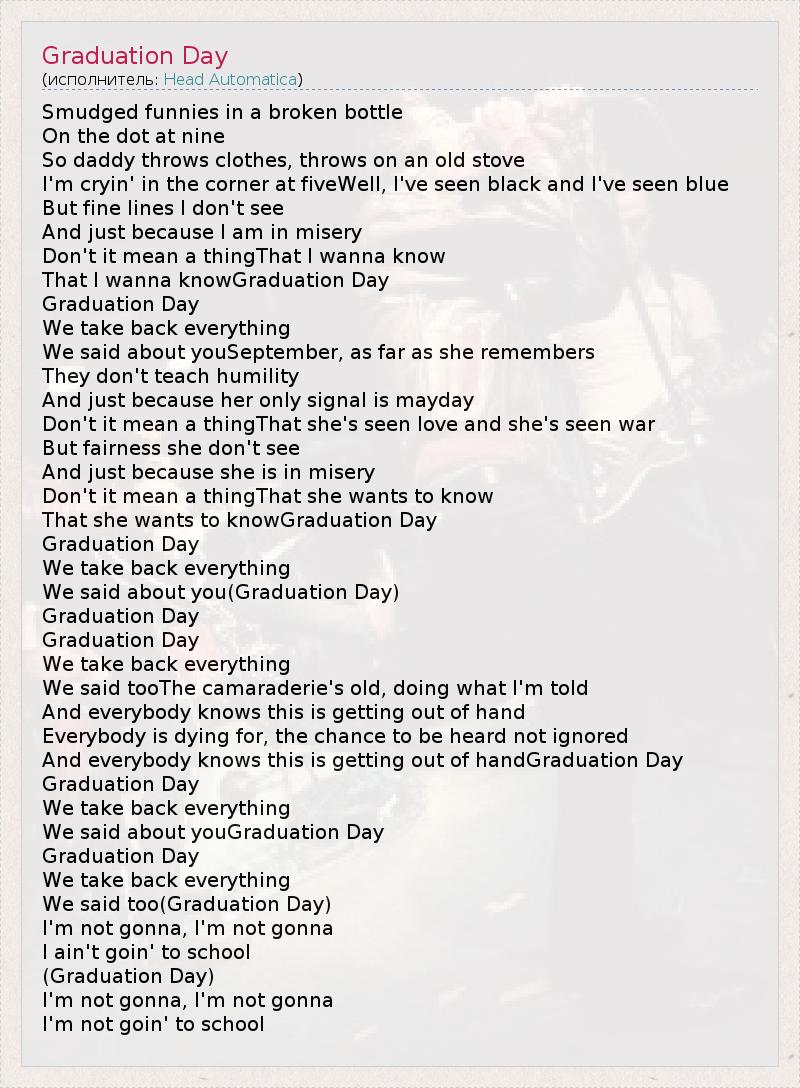 А как ты думаешь, о чем песня "Graduation Day" ?