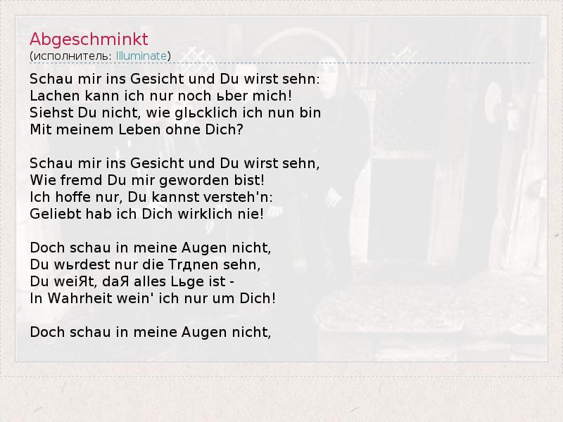 А как ты думаешь, о чем песня "Abgeschminkt" ?