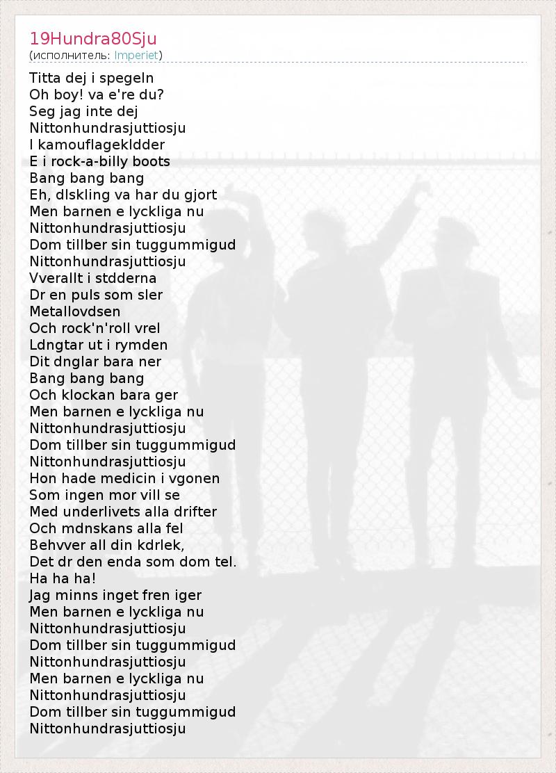 А как ты думаешь, о чем песня "19Hundra80Sju" ?