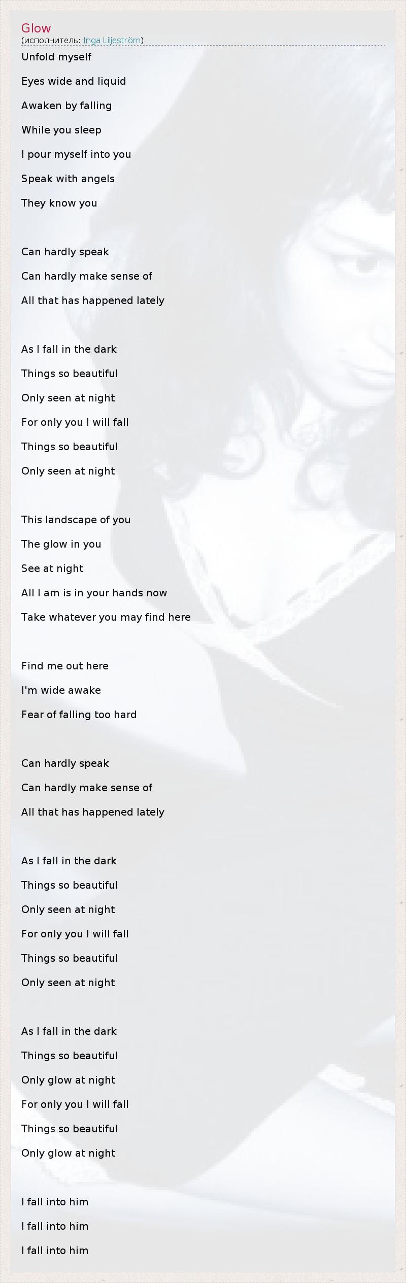 Это интересно:Австралийская исполнительница из города Сидней Inga Liljestrom,обладает уникальным голосом и очень красивой с потрясающими арранжировками музыкой. ДискографияUrchin (1998)Elk (2005)Sprawling Fawns (2006)Quiet Music for Quiet People (2006)