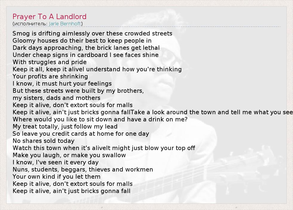 А как ты думаешь, о чем песня "Prayer To A Landlord" ?