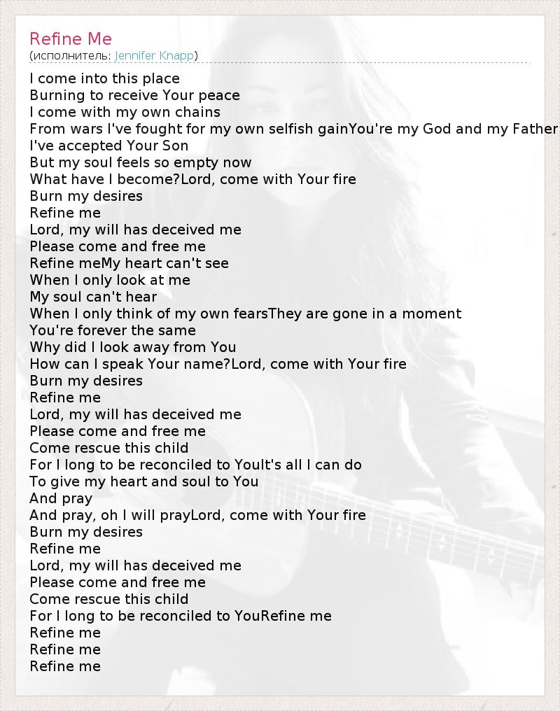 Это интересно:JENNIFER LYNN KNAPP (родилась 12 апреля 1974 года в городе Chanute, штат Kansas) - американско-австралийская фолк-рок исполнительница. Приобрела известность с выходом её сингла "Undo Me" из дебютного альбома "KANSAS" (1998). Её сингл "A Little More" из альбома "LAY IT DOWN" (2000) был номинирован на Грэмми, как и альбом "THE WAY I AM". 3 её альбома в общей сложности разошлись тиражом в 1 миллион экземпляров. 11 мая... продолжение