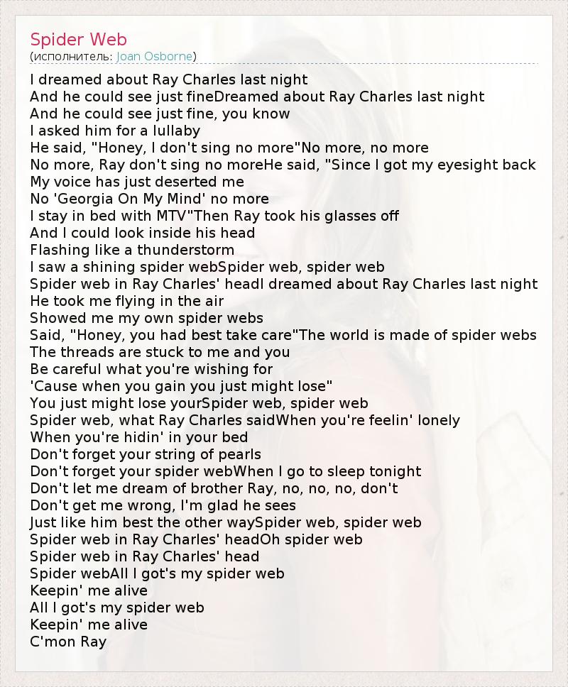Spider web, what Ray Charles saidWhen you're feelin' lonely