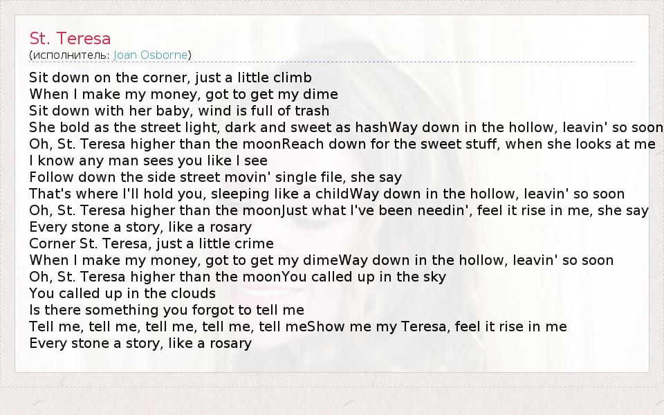 А как ты думаешь, о чем песня "St. Teresa" ?