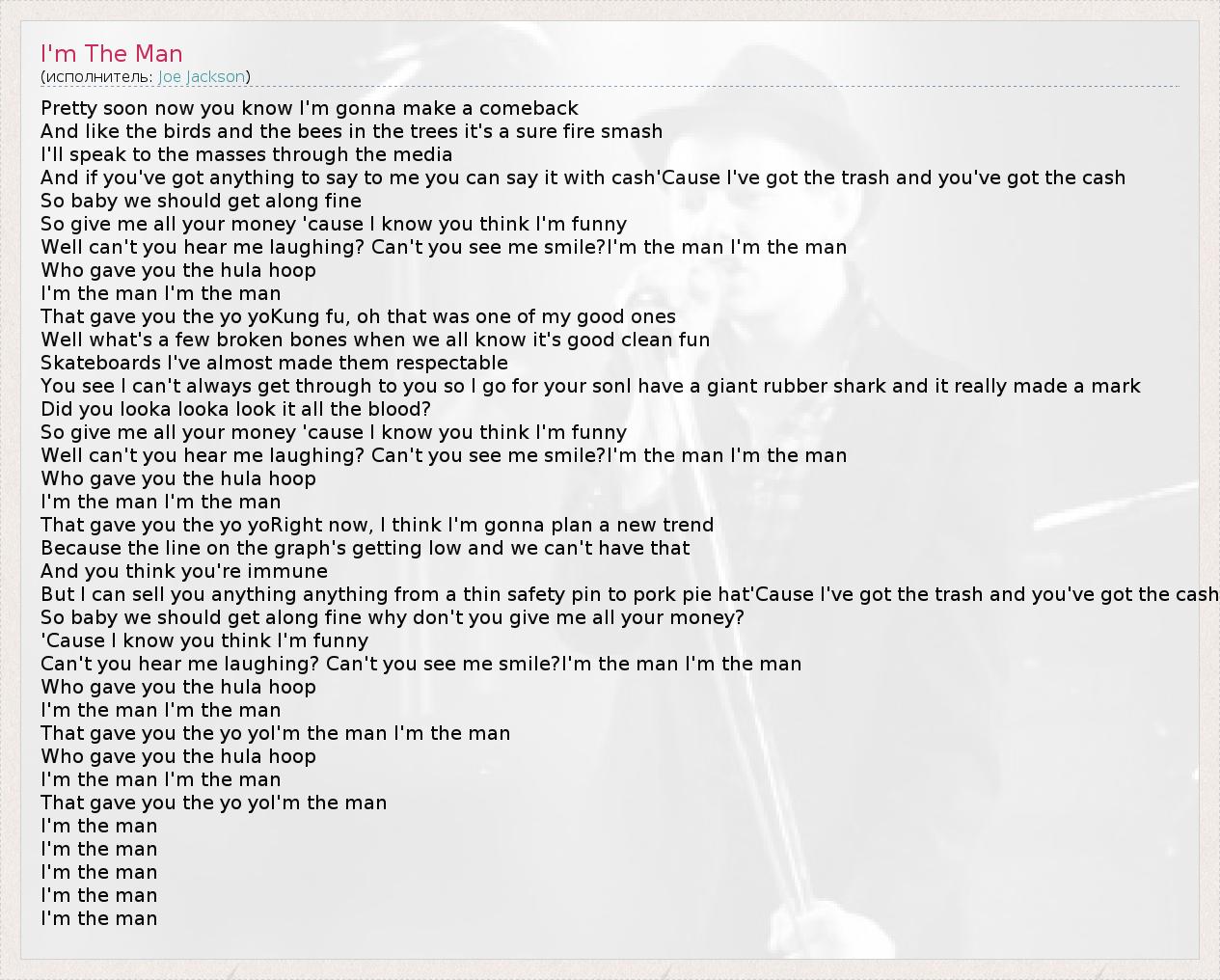 А как ты думаешь, о чем песня "I'm The Man" ?