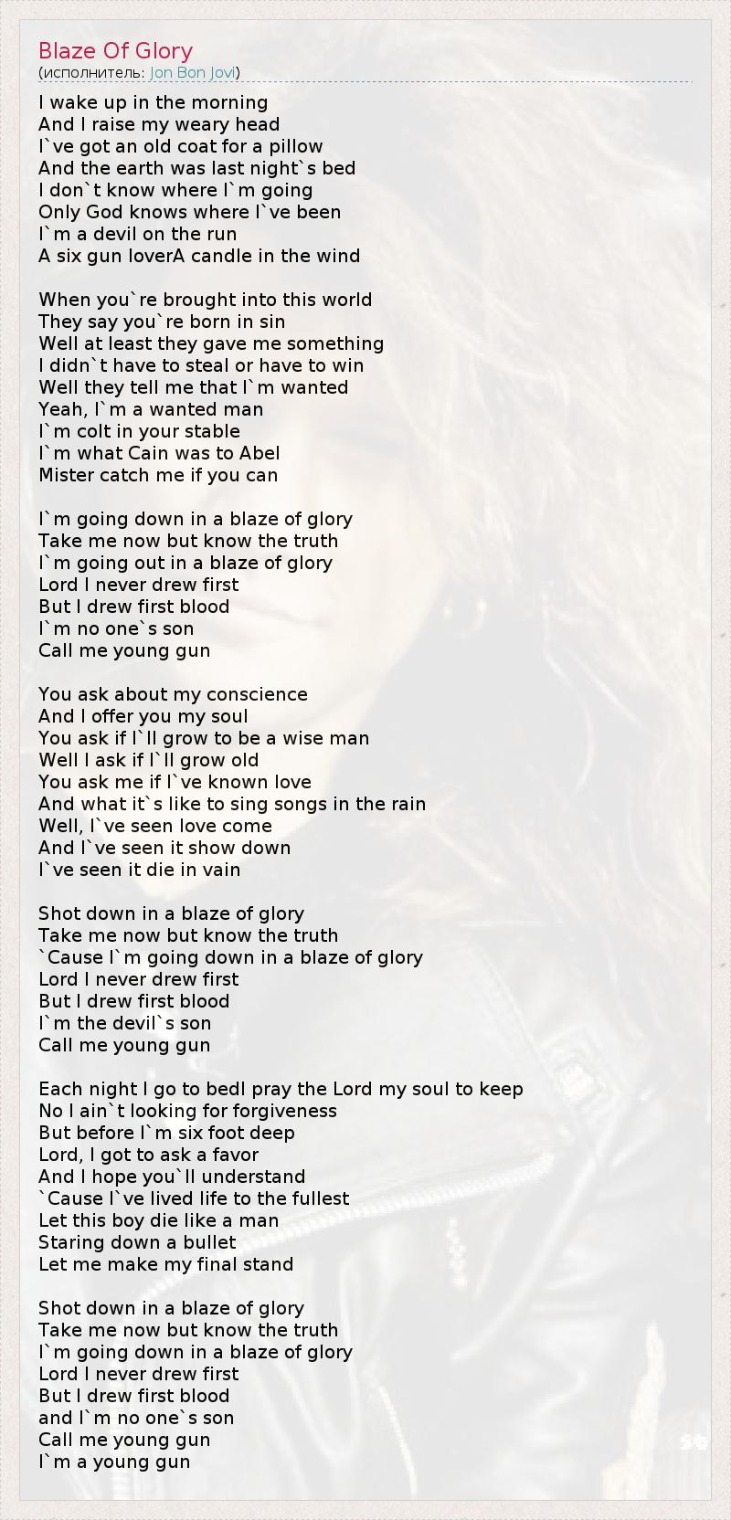А как ты думаешь, о чем песня "Blaze Of Glory" ?