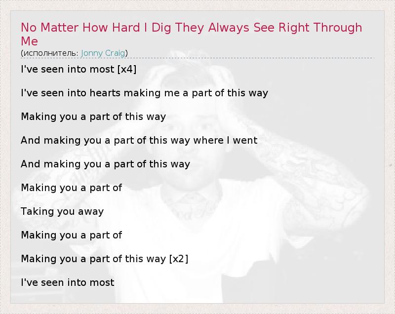 No Matter How Hard I Dig They Always See Right Through Me