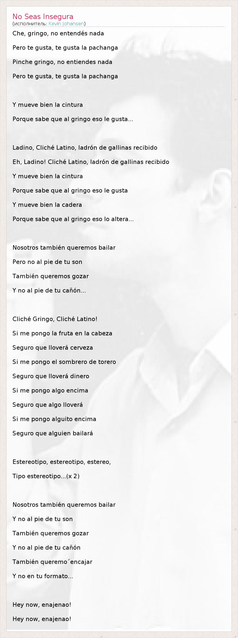 А как ты думаешь, о чем песня "No Seas Insegura" ?