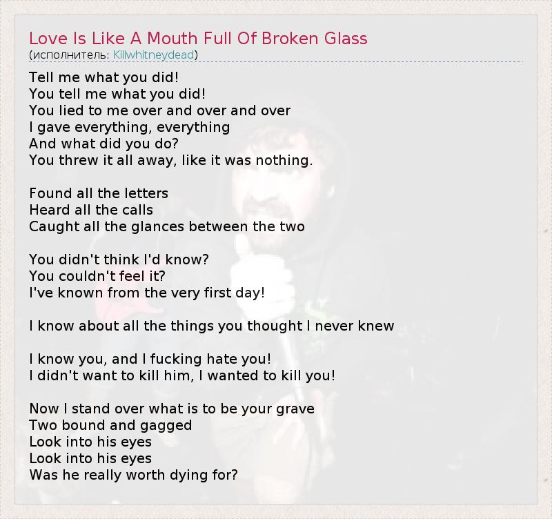 А как ты думаешь, о чем песня "Love Is Like A Mouth Full Of Broken Glass" ?