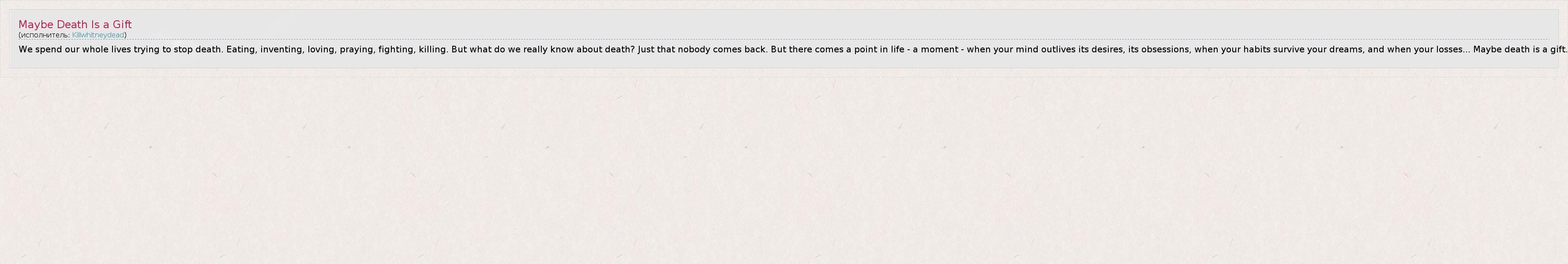 А как ты думаешь, о чем песня "Maybe Death Is a Gift" ?