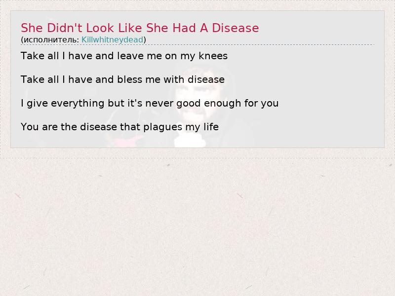 А как ты думаешь, о чем песня "She Didn't Look Like She Had A Disease" ?