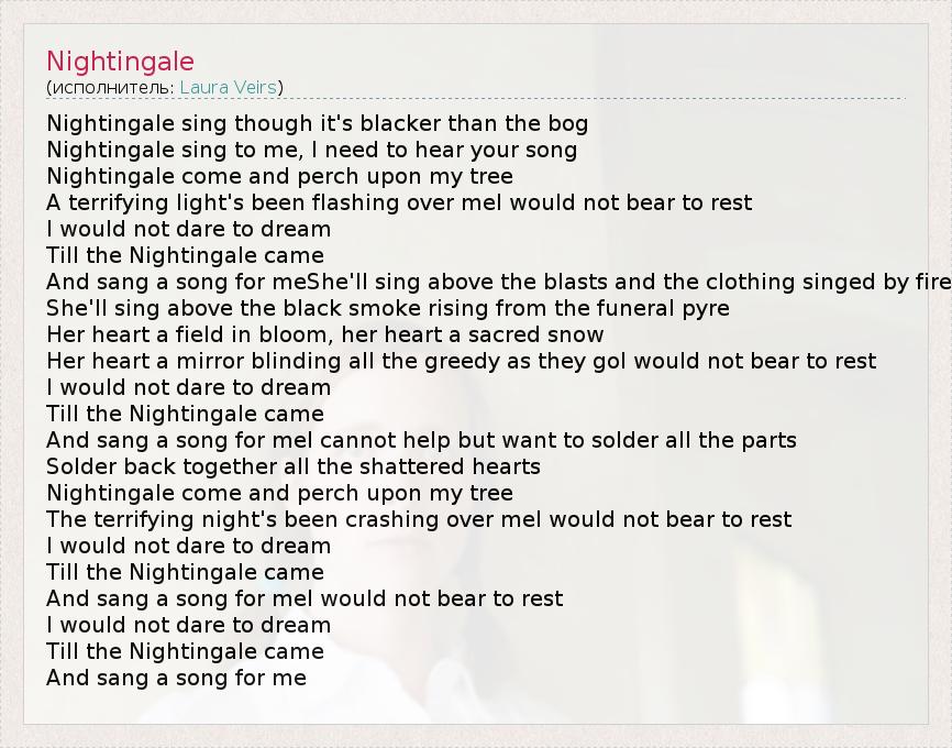 А как ты думаешь, о чем песня "Nightingale" ?