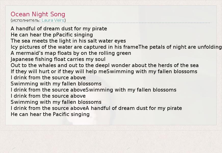 А как ты думаешь, о чем песня "Ocean Night Song" ?