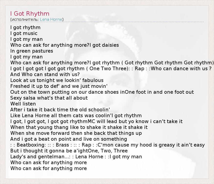 А как ты думаешь, о чем песня "I Got Rhythm" ?