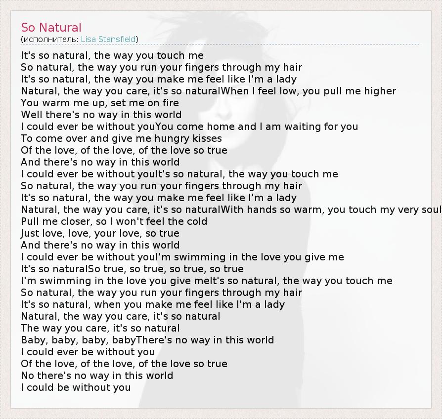 Natural, the way you care, it's so naturalWith hands so warm, you touch my very soul